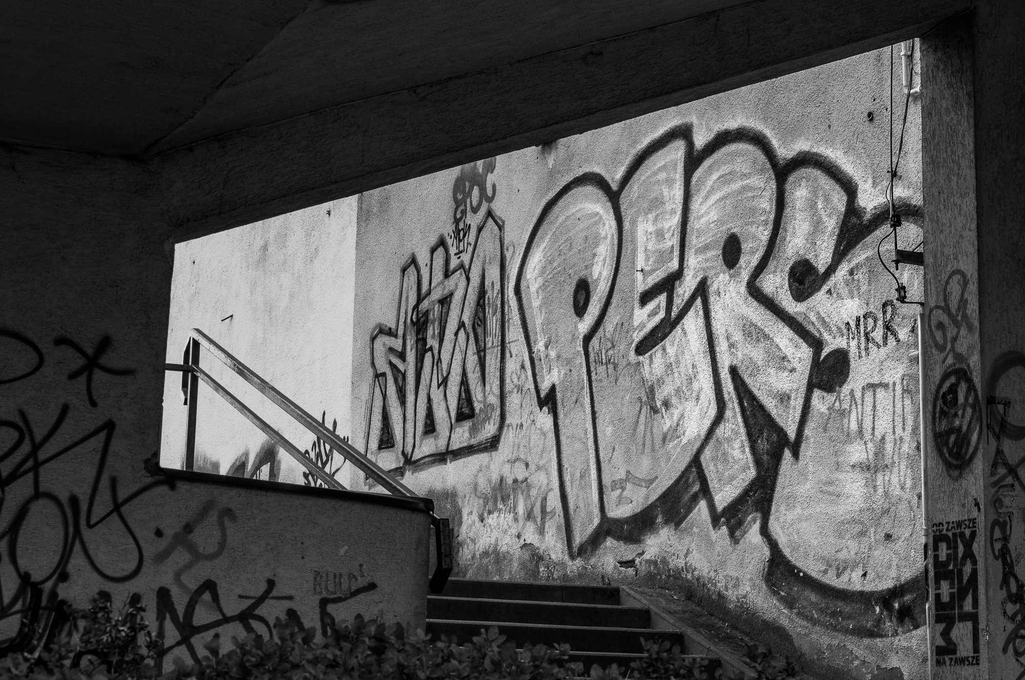 I like doing photographs of graffiti. But, while doing that, I always try to remember that I record the trace and the work of another human. Picture made by me is only the evidence that another street artist was here and that he left his mark on the wall. Thus, photographs of graffiti are, in general, in 95% work of graffiti artists. Nevertheless, when I always see street artwork that caught my eyes, I try to give something from myself in the photographs. Today, I want to present to you some of my artworks (pictures of the graffiti), which are simultaneously works of other people and mine. Why? One of the best examples of the photographs, about which I could say that the painter and photographer are equal creators of the pictures, is the photo with bench situated opposite the graffiti (image no 1).