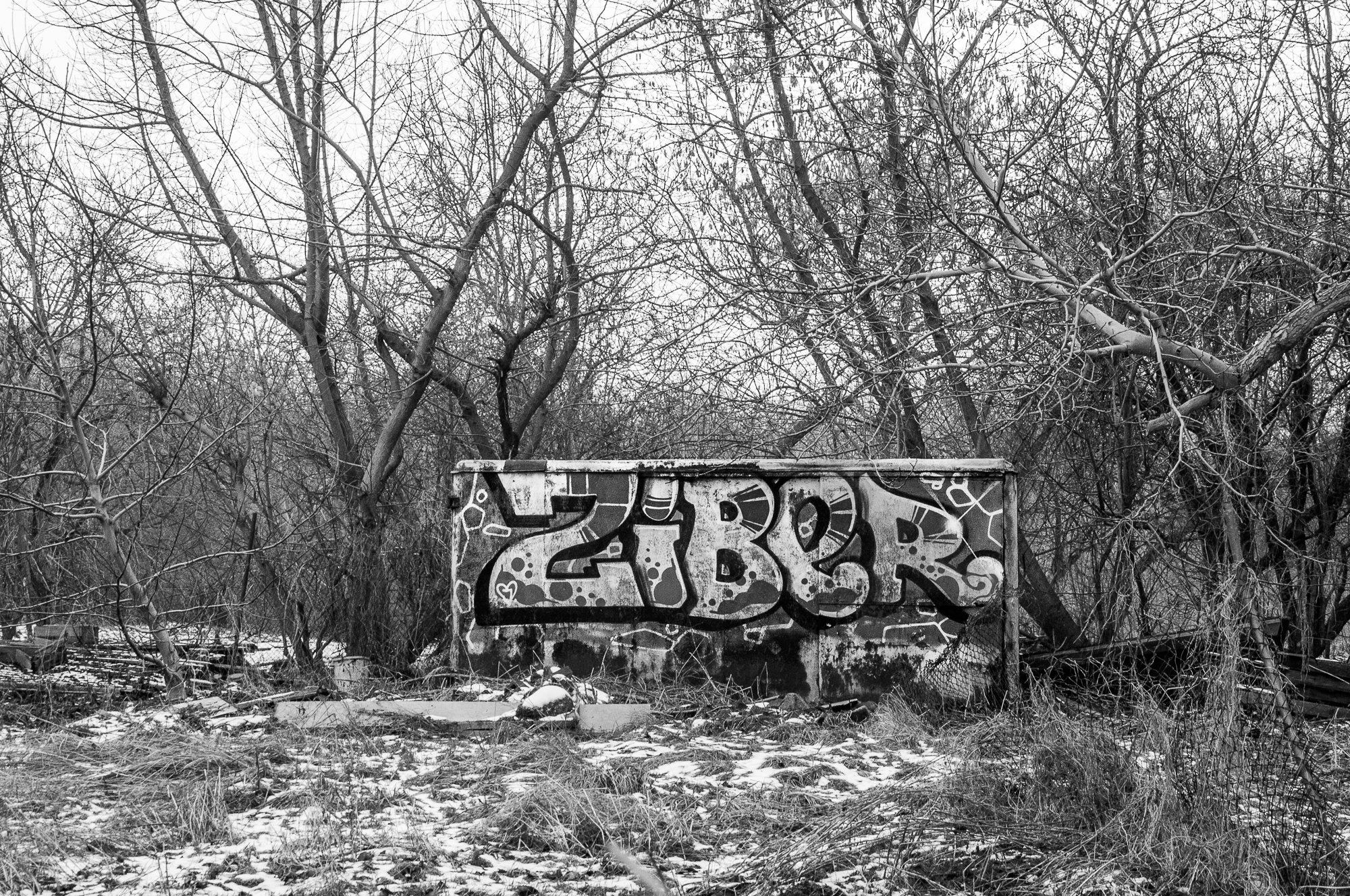 It is the first image that I am presenting once again on this website. Imagine that all other photographs published here that are more than 400 pictures are not doubled in my posts. So what is so unique in this photograph for me that I decided to show it once again? First of all, I like this picture. I already mentioned before that I love to wander through the streets with the camera in my hands. When I saw this bench and graffiti, I wanted to stop and sit down for a minute and enjoy the view. Unfortunately, this activity lasted only a few seconds because it was too cold to sit on the bench. Nevertheless, this picture still shows graffiti with its surroundings.
