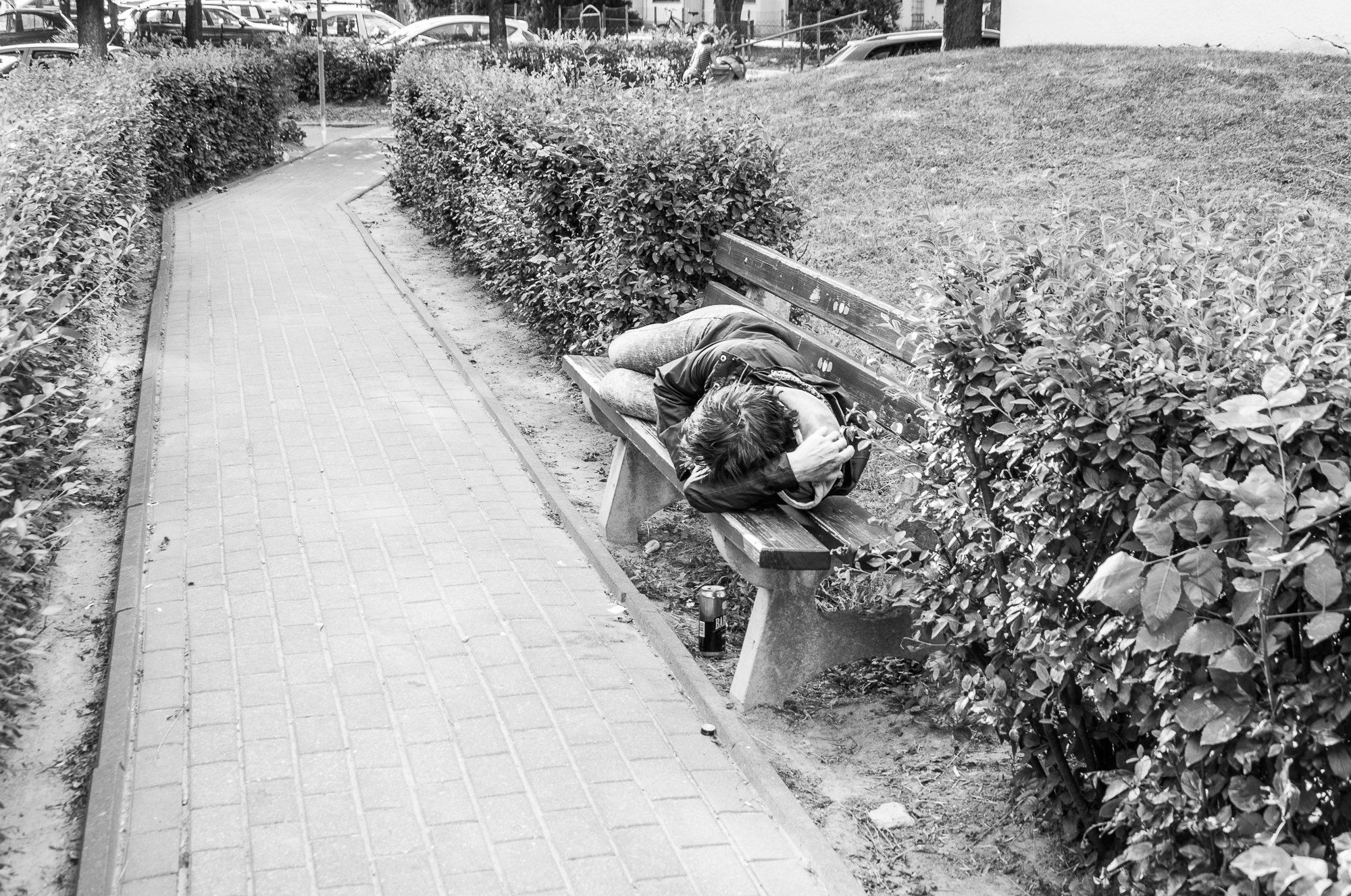 On the 25th of September 2018, I took photographs of one of the most dangerous areas in Warsaw. This place is named Wrzeciono, and it is a part of the Bielany district. I met two tipplers there. One of them asked me to take a picture of him. Also, he politely requested if I send the photo to the address which he gave. Because he was drunk, I made him an image, but I did not send it to him. If he would be sober, I would undoubtedly do it. Who knows, maybe if he sent me his e-mail, I would send him a message? I do not know. The fact is that I do not link to talk with drunk people.