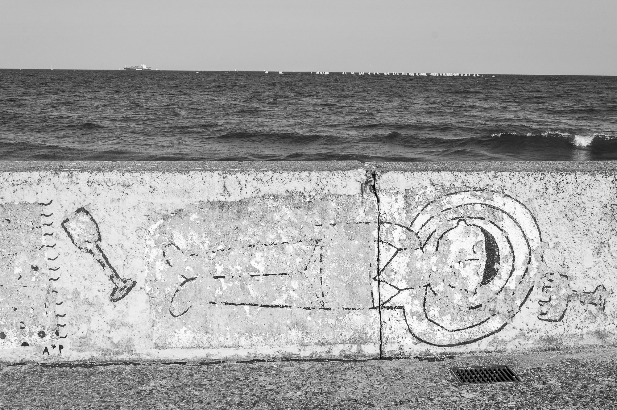 Let me give you some examples. Let’s start with the cover of the English version of “Ostensible Abstraction.” In the picture, we see a wall with a piece of shadow and black elements, which can be similar to the eye. I named this photograph “KKK.” Why? Because the silhouette of the shadow with the look is quite identical to a profile of a member of the Ku Klux Klan.
