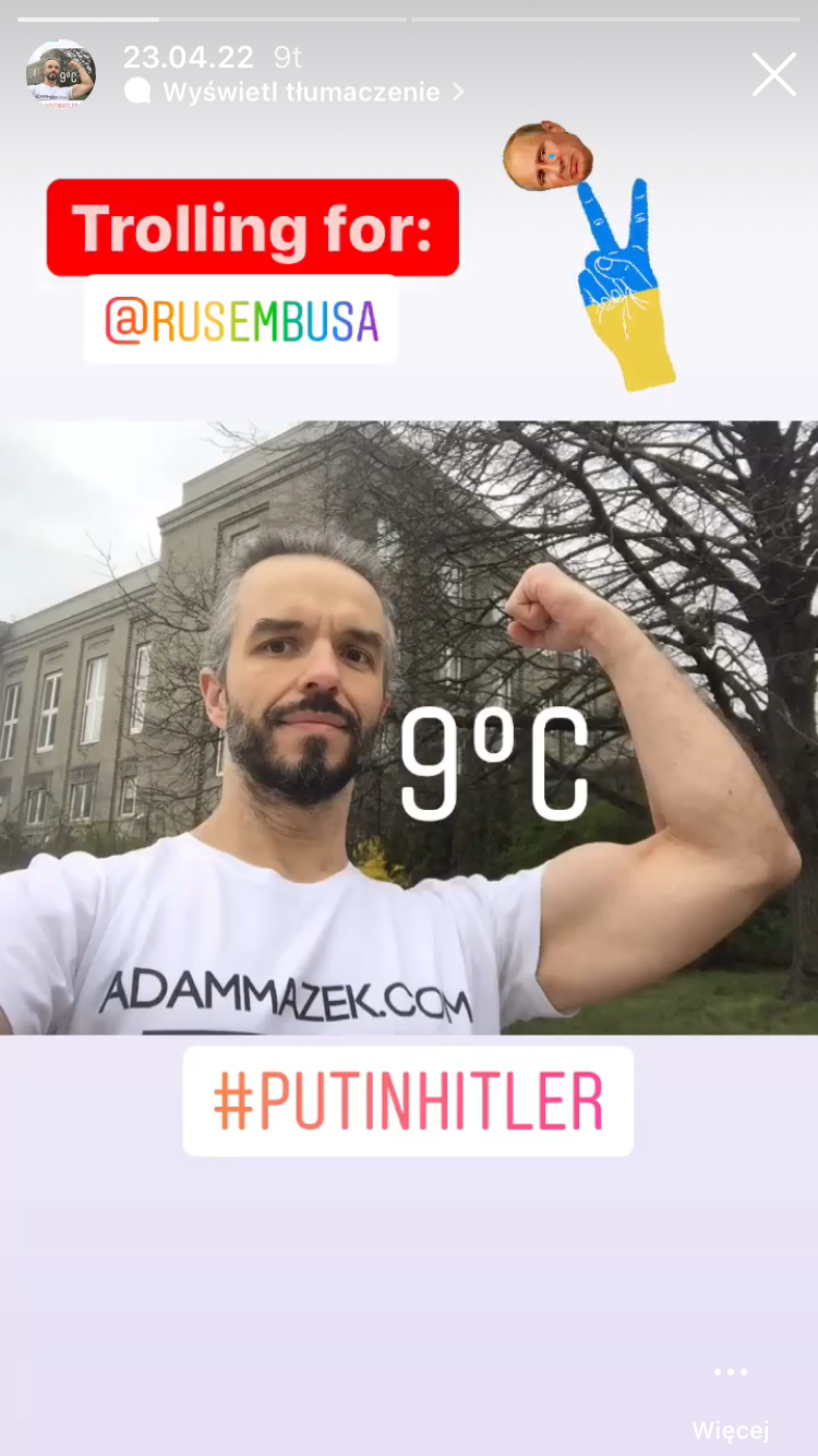 Practically all posts that I wrote since the Russian invasion in Ukraine (it happened on the 24th of February, 2022) were about war. I wrote this text on the 22nd of March, 2022, and it is no exception. Undoubtedly, I have monothematic tendencies regarding writing. In posts I wrote earlier (I still haven’t published most of them), I wrote many times about intermittent fasting, cold showers, and exposing the body to cold by wearing summer clothes (with the www.adammazek.com t-shirt at the forefront) in frigid temperatures.