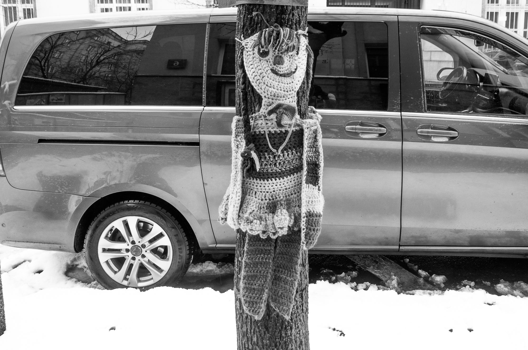 Now, after listening to the album several times, I don’t ask this question anymore. The truth is that while contemplating the “Tubular Bells,” I move into the world of music. I let myself be carried away by the melody that leads me in different directions of my imagination in my thoughts, dreams, and fantasies. That’s why the titled question of “What’s going on here?” is not actual anymore. I believe that the titled questions are asking passers-by themselves who see me wearing the www.adammazek.com t-shirt in cold temperatures (+2 degrees Celsius / 35,6 degrees Fahrenheit) and doing street photography on Warsaw’s streets.
